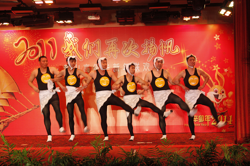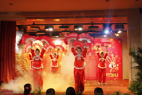 此次聯(lián)歡會(huì)節(jié)目種類豐富多樣,有歌曲、小品、舞蹈、雙簧、古箏等,充分展示了高爾夫人多才多藝的一面。水鼓舞《鼓舞2011》、博擊操《重拳出擊》鏗鏘有力,擊出了黃山高爾夫員工昂揚(yáng)向上的斗志和對(duì)未來(lái)的執(zhí)著堅(jiān)定;小品《服務(wù)從心開始》、《收款》、舞蹈《嘻唰唰》、雙簧《幸福高爾夫》等貼近員工工作,讓大家在捧腹大笑的同時(shí)亦心領(lǐng)神會(huì)到其它部門工作的不易;小品《開心農(nóng)場(chǎng)》、舞蹈《詼諧天鵝舞》、《串燒版千手觀音》以夸張的藝術(shù)表現(xiàn)形式得到了大家的陣陣喝彩……與此同時(shí),集團(tuán)副總裁嚴(yán)軍獻(xiàn)上的《草原之夜》、酒店總經(jīng)理趙曉耘傾情演唱的《希望》、酒店副總經(jīng)理錢曉云灑脫熱情的《套馬桿》以及各部門經(jīng)理的《康定情歌》、《巴郎仔》、《莫斯科郊外的晚上》等少數(shù)民族歌曲在贏得員工們陣陣歡呼的同時(shí),也充分傳達(dá)出黃山高爾夫酒店各部門和諧、團(tuán)結(jié)、樂觀、向上的精神。