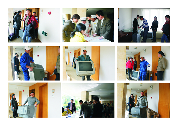 日前,酒店2號(hào)樓客房電視機(jī)進(jìn)行升級(jí)更換,為將更多的實(shí)惠讓利員工,酒店對(duì)撤下的品牌電視機(jī)作出了內(nèi)部員工優(yōu)惠購(gòu)買(mǎi)的決定。低廉的價(jià)格,優(yōu)質(zhì)的商品,得到廣大員工極大熱情的響應(yīng),不足兩日,客房撤下的一百余臺(tái)電視機(jī)就搶購(gòu)一空。(圖為員工及其家屬喜氣洋洋、熱熱鬧鬧購(gòu)買(mǎi)電視機(jī)回家的場(chǎng)景)