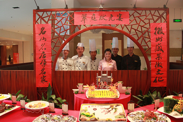 弘揚(yáng)徽菜文化、創(chuàng)新徽菜品牌。日前,由市商務(wù)局、市旅委、市烹飪協(xié)會(huì)主辦的第十五屆中國(guó)黃山國(guó)際旅游節(jié)暨徽文化節(jié)之“徽菜美食展”評(píng)選結(jié)果揭曉,黃山高爾夫酒店參展的“狀元文化主題宴”榮獲本次美食展金獎(jiǎng),黃山高爾夫酒店被評(píng)為中國(guó)徽菜之鄉(xiāng)推薦酒店。