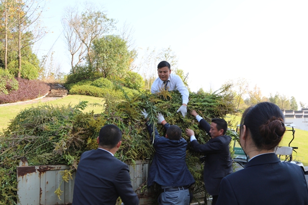 黃山雨潤度假區(qū)擁有15000畝原生態(tài)林地,經(jīng)過治安大隊(duì)多天的仔細(xì)偵察,在酒店和球場(chǎng)周邊,甚至度假區(qū)外圍發(fā)現(xiàn)了7處一支黃花的“窩點(diǎn)”。7個(gè)“掃黃”小組分頭行動(dòng),將各個(gè)黃花“窩點(diǎn)”一一鏟除。巾幗不讓須眉,姑娘們也紛紛扛起鐵鍬,來到雜草叢生的最前線,為這次行動(dòng)貢獻(xiàn)一份力量。